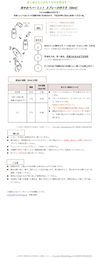 セルフケア蒸し暑さも心のモヤも吹き飛ばす、爽やかペパーミントスプレーの作り方 2025.06.16 2026.02.03 Post 記事のタイトルとURLをコピーする 記事のタイトルとURLをコピーする Post アロマスプレーアロマのお守りセルフケアバジルペパーミントユーカリローズマリー体スッキリ暑さ対策 ゼミ生限定 「花粉・黄砂対策アロマケア 上級編」前の記事 夏バテ・夏疲れの解消に。アロマでできる自律神経ケアと疲労回復次の記事